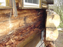 Here is a classic example of a home that someone "repaired" with a half log. Everything behind it is thoroughly rotted.
