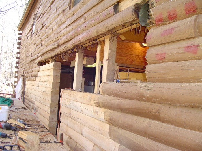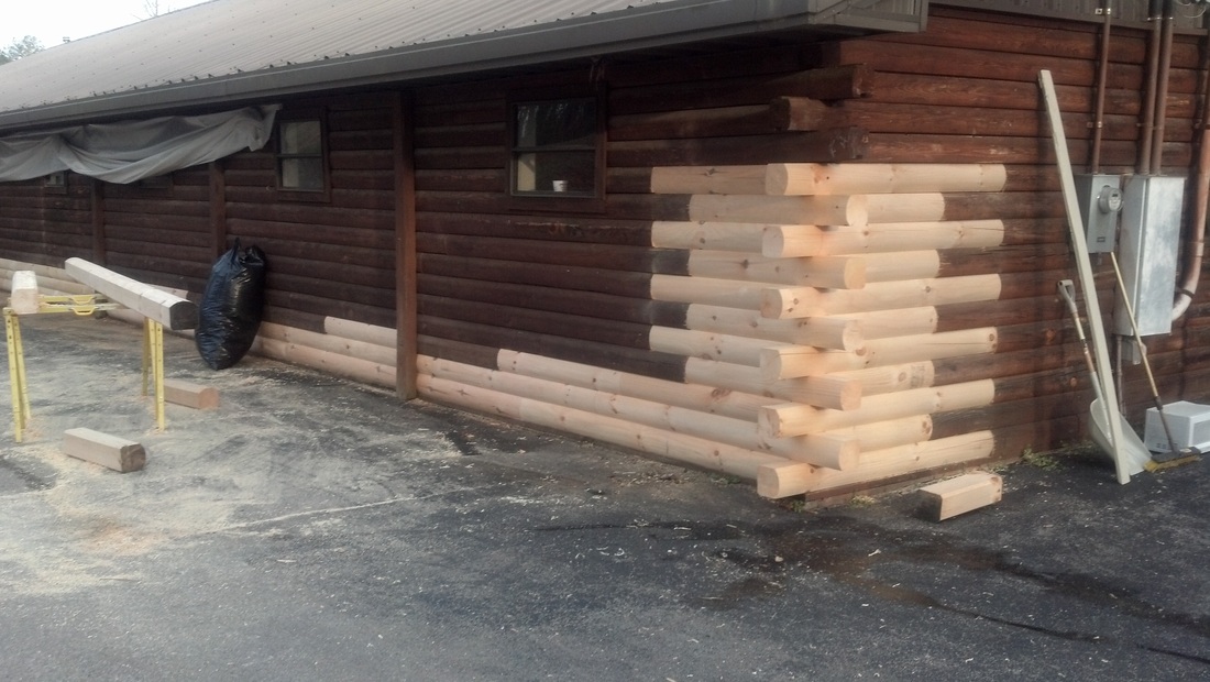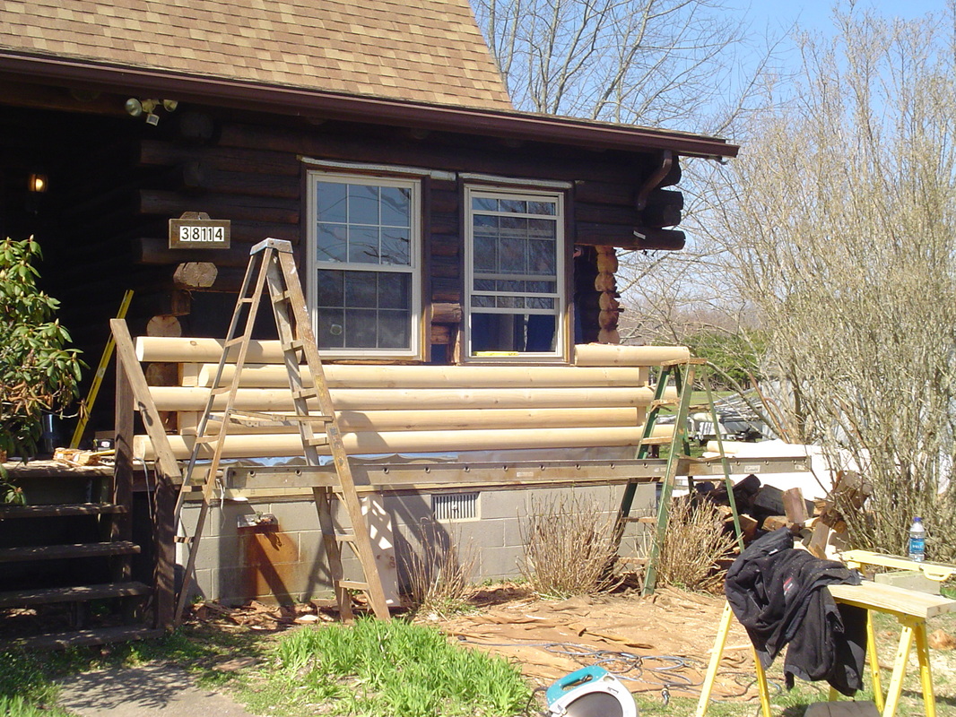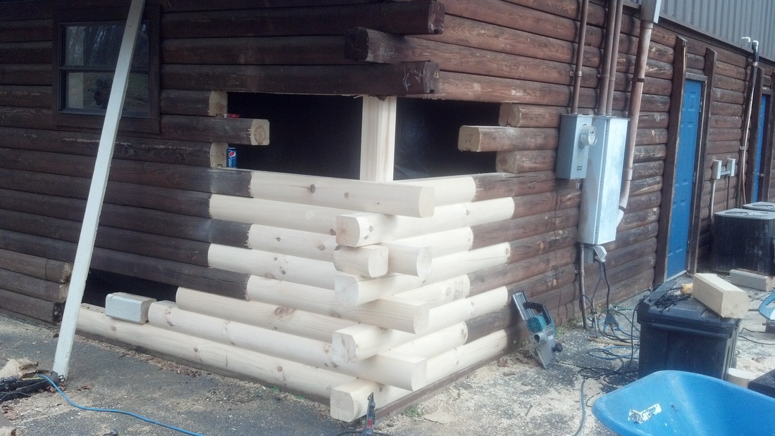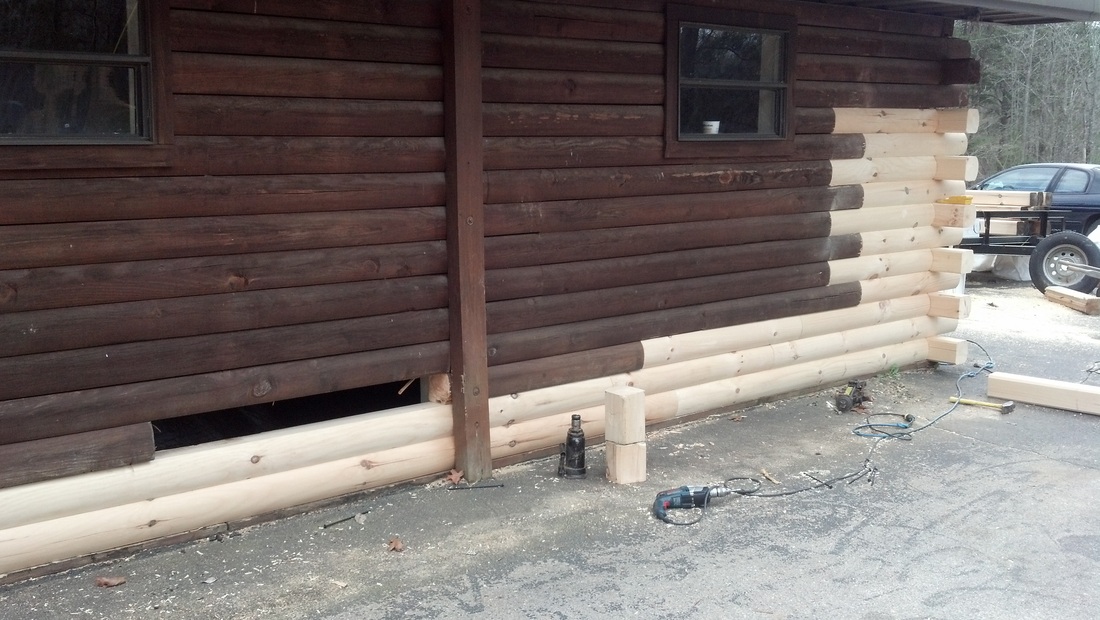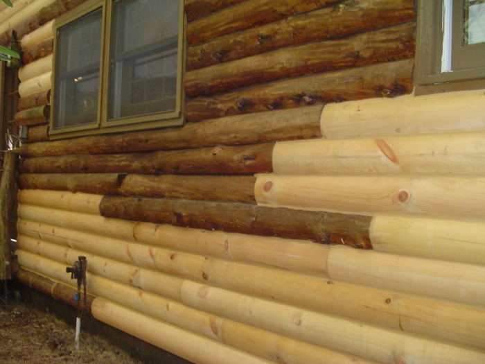 damaged wood. But when it comes to refacing 4 or 5 courses of logs in a row or