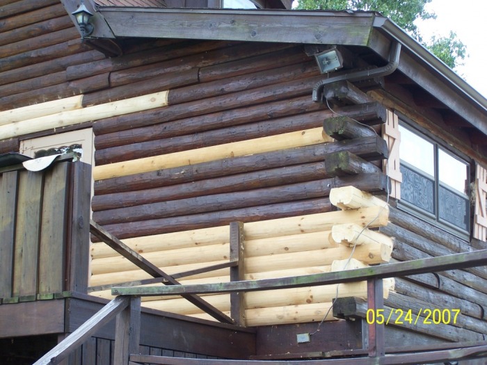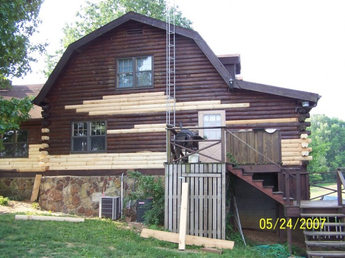 Just a few years after these log repairs were finished, we were called to repair it again, this time with a full log.